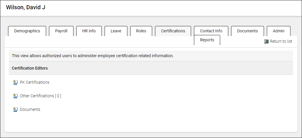 When finished adding certifications, click Return to Certifications Menu to add documents or Return to List if done with certifications.