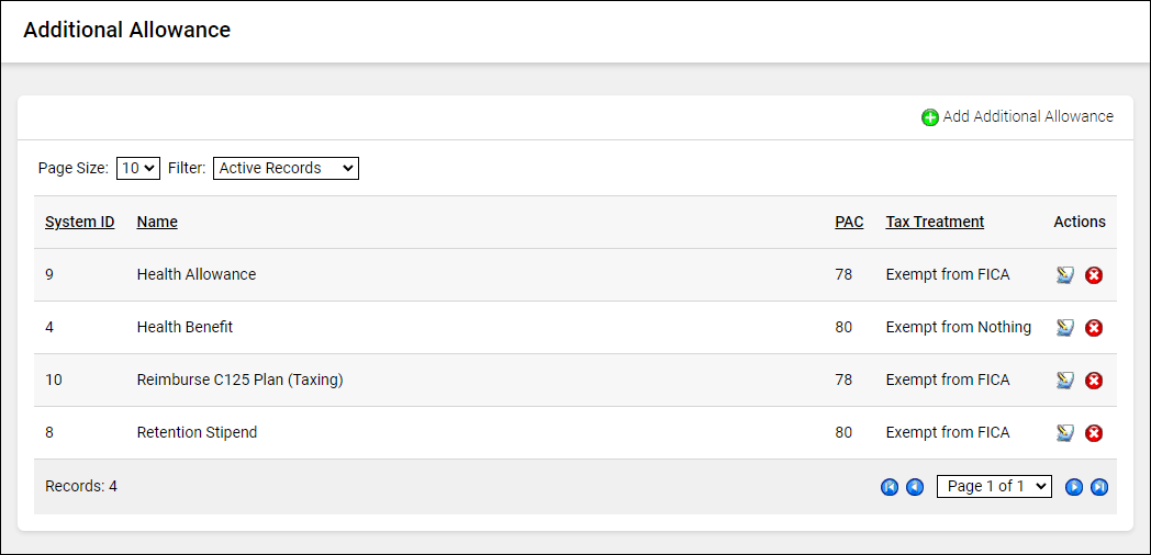Additional allowances are designed to assign additional earnings and adjustments to employees either individually or as a group. Each tax treatment requires a separate additional allowance.