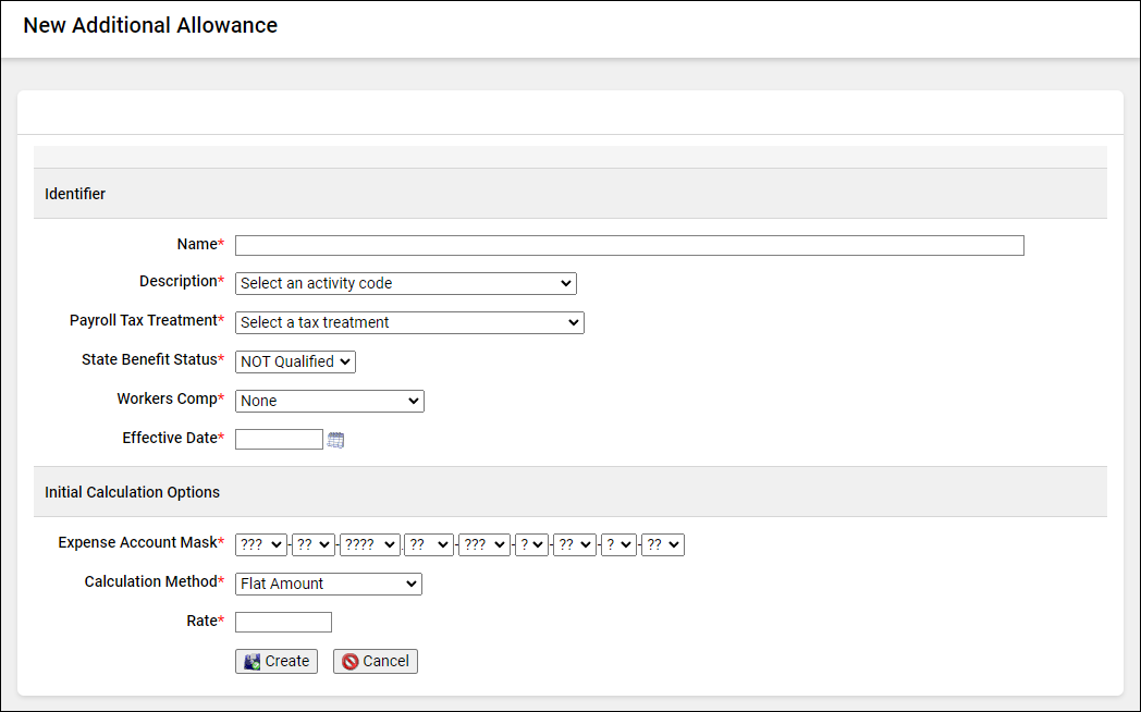 State Benefit Status: Designate whether or not the allowance is qualified for TRS. Selecting NOT Qualified means that TRS will not be calculated on this allowance.