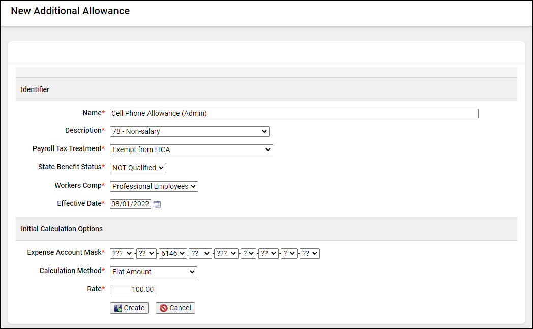 Review the fields to make sure you're satisfied with the way the additional allowance will be set up. Once it's been saved, it can't be changed.
