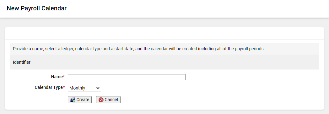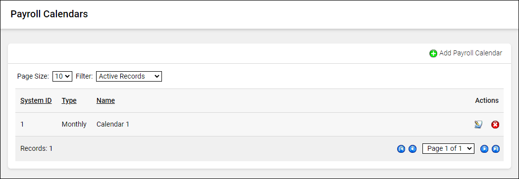 Calendars are used to determine how often the payroll batch is run and on what dates. Each payroll period can only be used once.