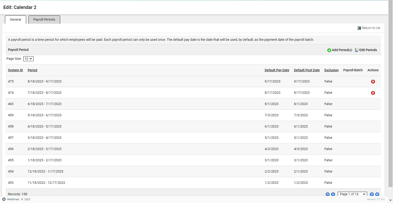 Click Save, and you're returned to the Payroll Periods tab with all periods displayed.