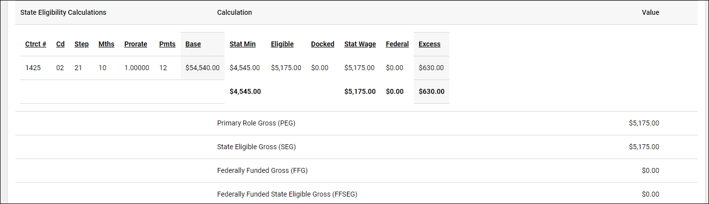 Base: This number divided by Pmts determines Eligible. In the illustration, 50,710.00 / 12 = 4,225.83.